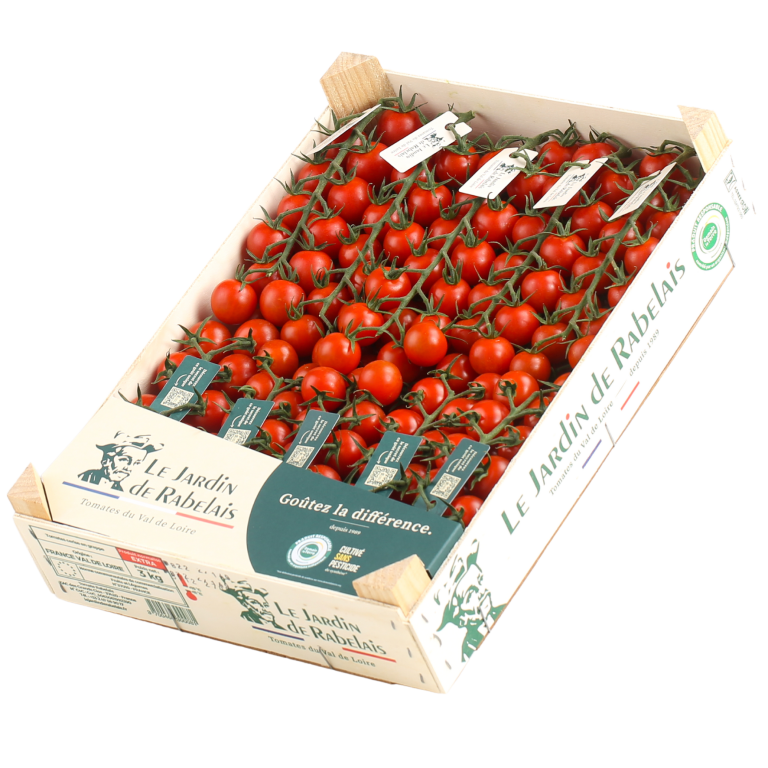 Légèrement moins de fruits sur la grappe que la Tomate grappe Jardin de Rabelais, la Petite Rabelais est tout aussi bonne et gustative. Les fruits sont fermes et sucrés, vous pouvez les déguster à la fois cuits ou crus, en accompagnement ou en salade. Nos tomates grappe sont cueillies à la main à maturité, conditionnées le jour même et sont disponibles dès le lendemain matin chez votre détaillant en fruits et légumes de qualité.