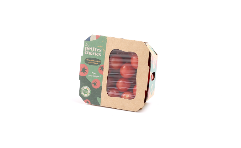 Osez sans rougir vous faire plaisir avec notre barquette de tomates cerises Les Petites Chéries ! Dans son emballage en carton 100% recyclable, ces tomates raviront les petits comme les grands. Pas besoin d'avoir faim pour les manger sans fin ! Elles se dégustent tant à l'apéritif qu'en salade : ouvrez votre barquette puis savourez... ! Retrouvez la gamme Les Petites Chéries en grandes surfaces, principalement chez Carrefour, Leclerc et Match.